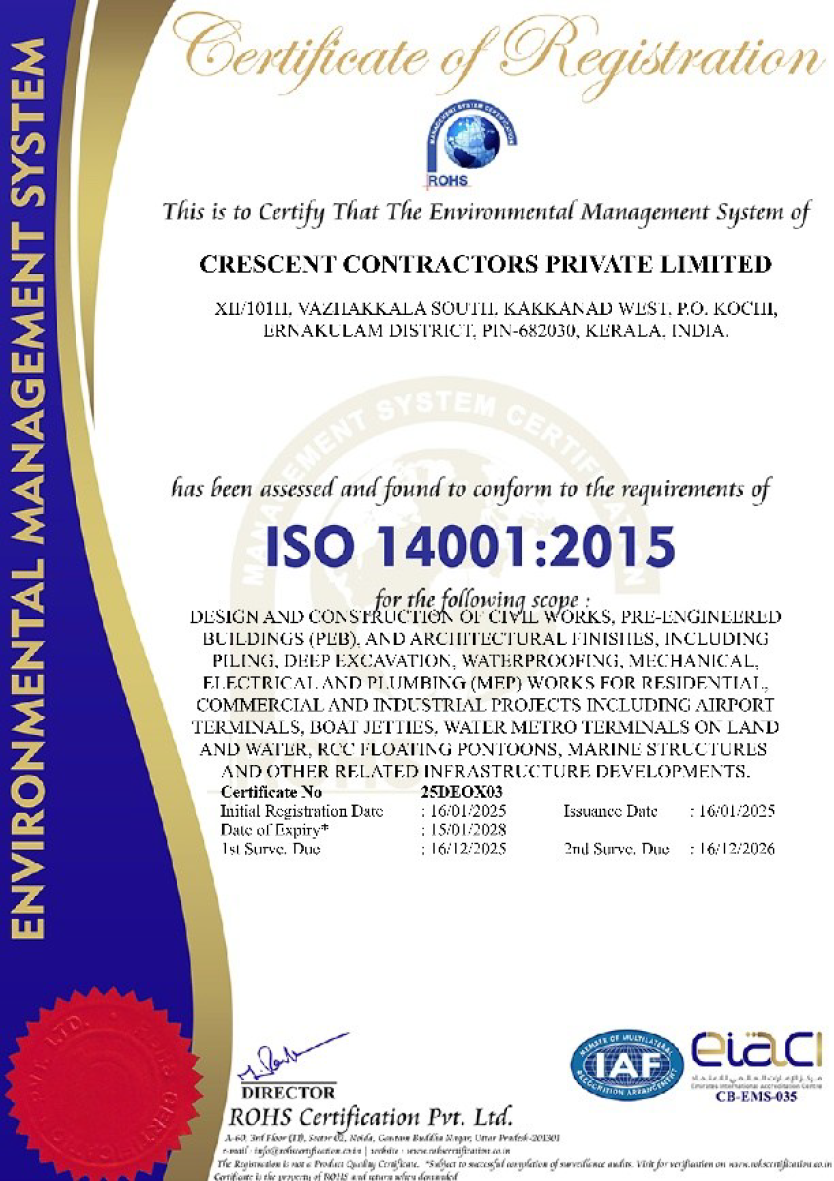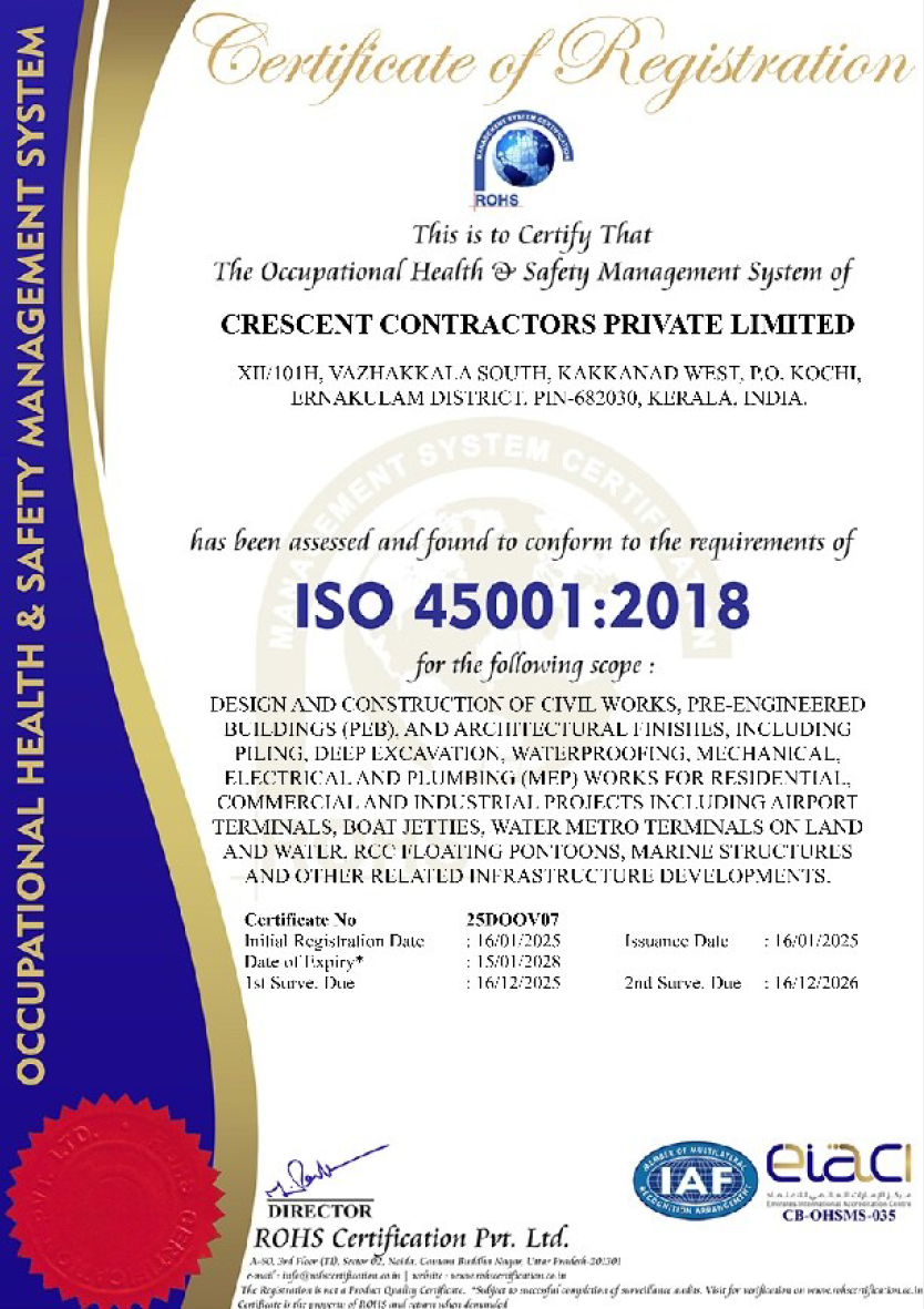 Since 1989, Crescent Contractors Pvt. Ltd. has been shaping skylines with quality, innovation, and trust. As an ISO-certified construction company, we deliver turnkey and infrastructure projects that stand for precision, safety, and excellence.